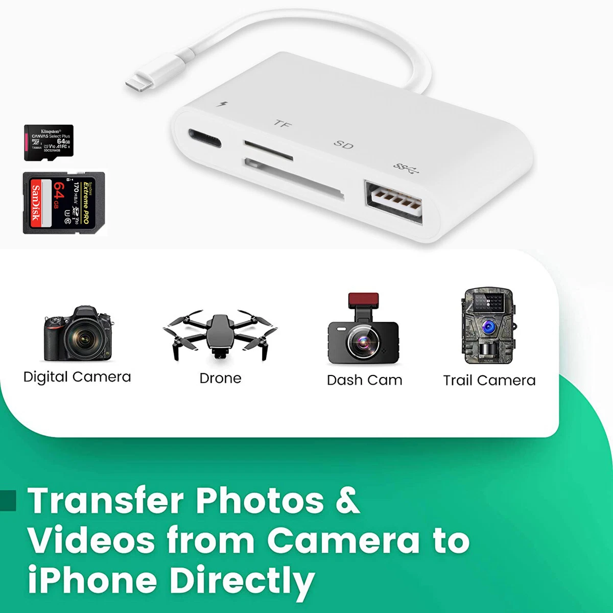 Sd Card Reader For Iphone 14 13 Pro Ipad Easy To Transfer Storage Photos Videos Ebay